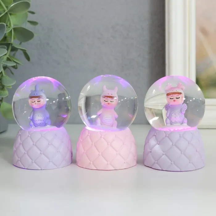 Снежный шар стеклянный «Малыш-динозаврик», световой, 4×4×6.7 см, МИКС — Характеристики
