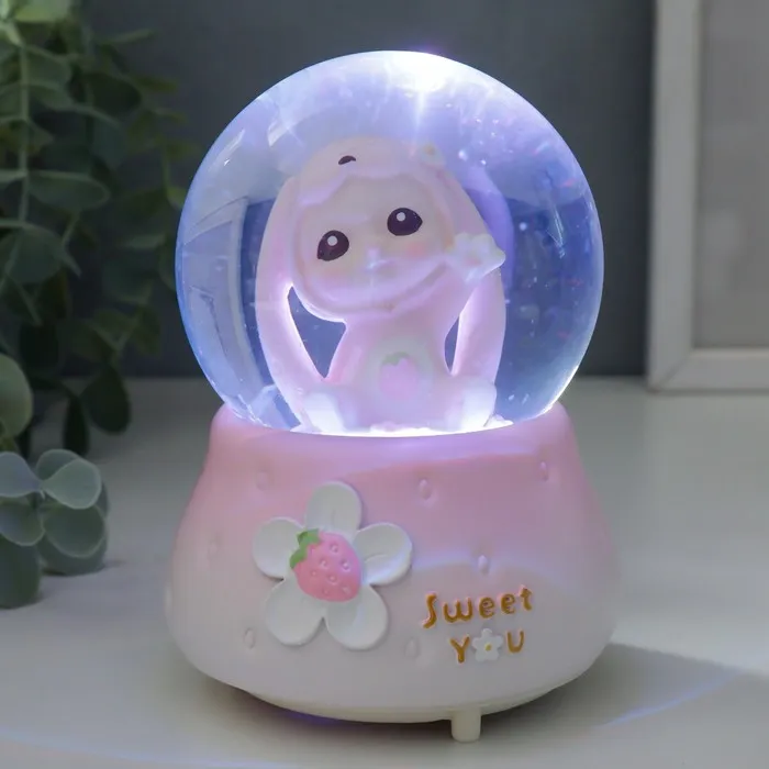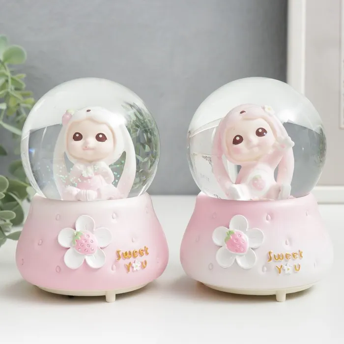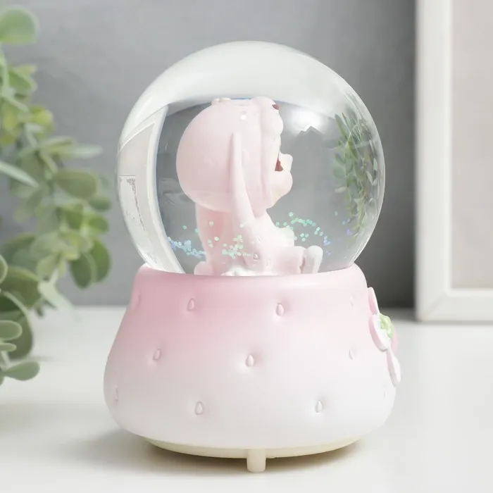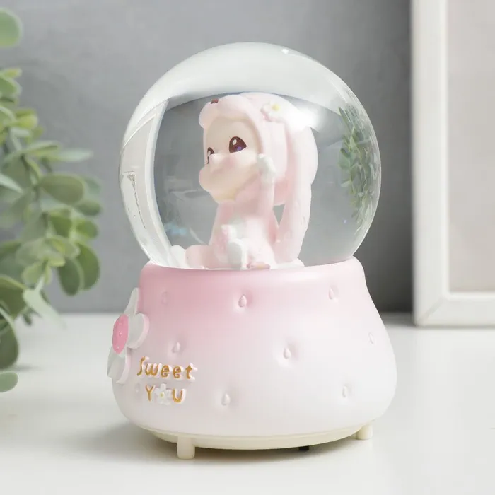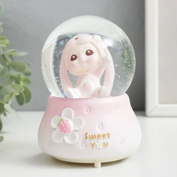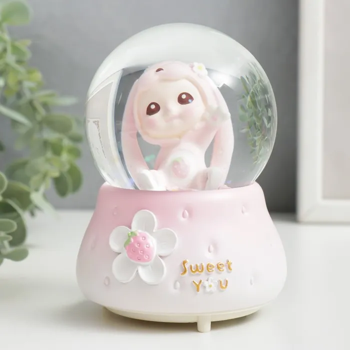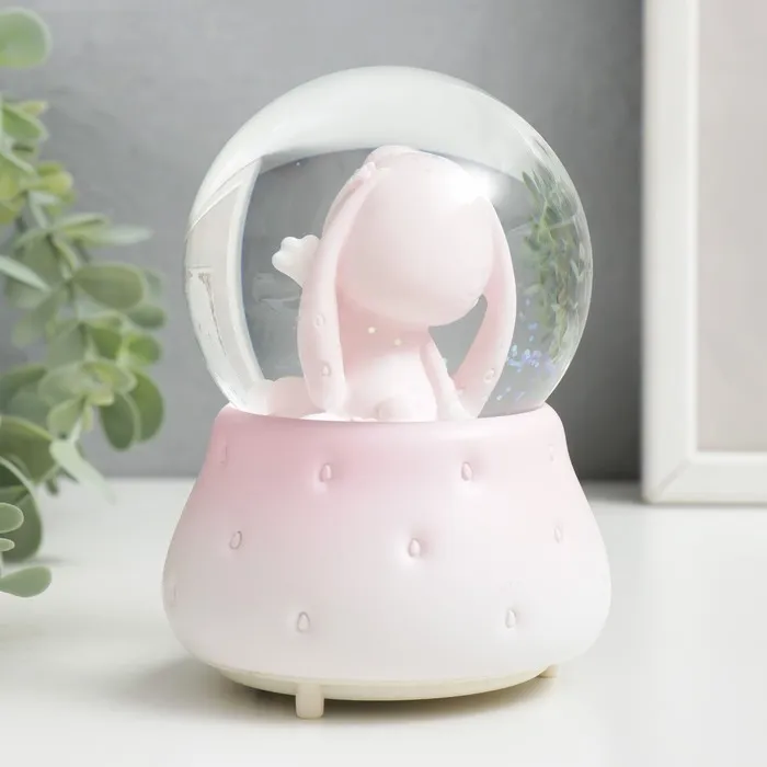 Снежный шар стеклянный «Малыш в костюме зайки», музыкальный, световой, 12×8×8 см, МИКС — Характеристики