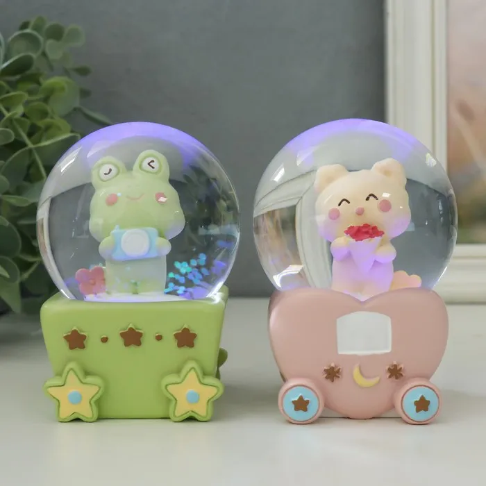 Снежный шар стеклянный «Малыш-зверёк в коляске», световой, 8.5×6.5×6.5 см, МИКС — Характеристики