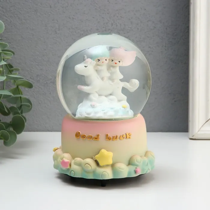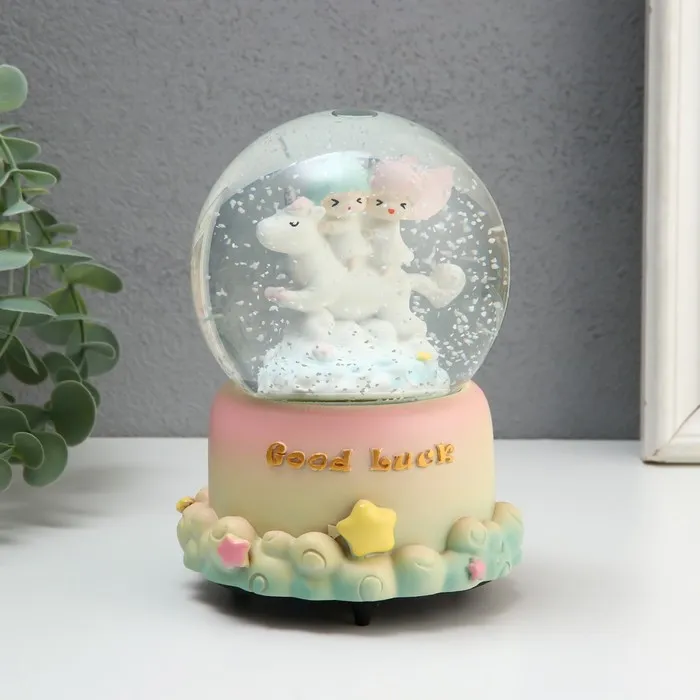 Снежный шар стеклянный «Малыши в облаках», музыкальный, крутится, 10.5×10.5×15.5 см, МИКС — Характеристики