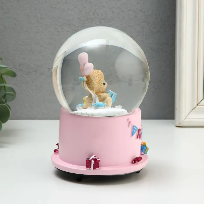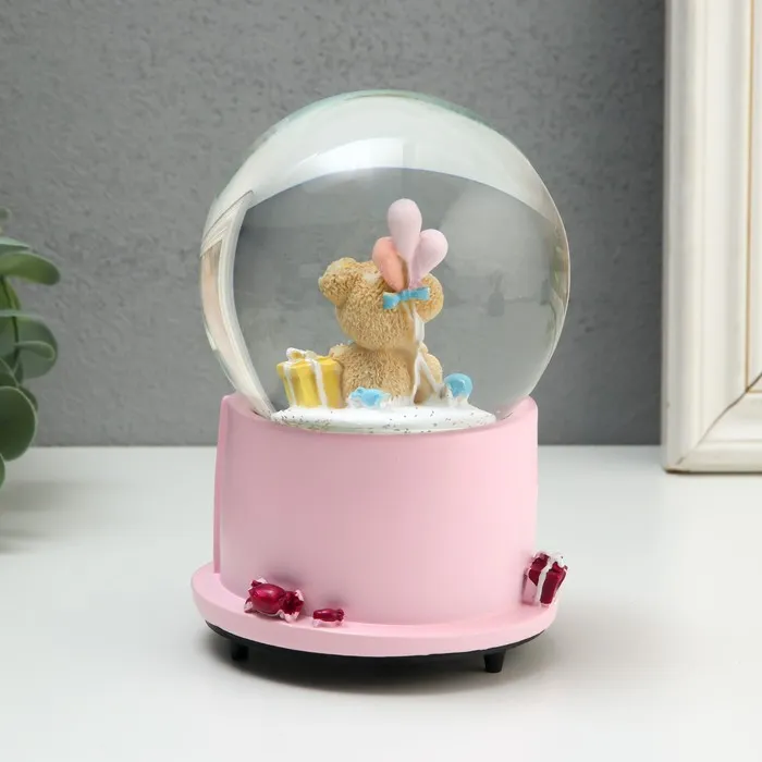 Снежный шар стеклянный «Мишка с подарком», музыкальный, механический сувенир, 10.5×10.5×15.5 см, МИКС — Характеристики