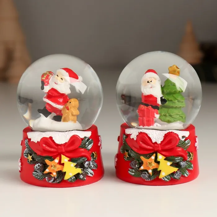 Снежный шар стеклянный «Новогодний персонаж с бантом, ёлочкой», 4.7×4.7×6.5 см, МИКС — Характеристики