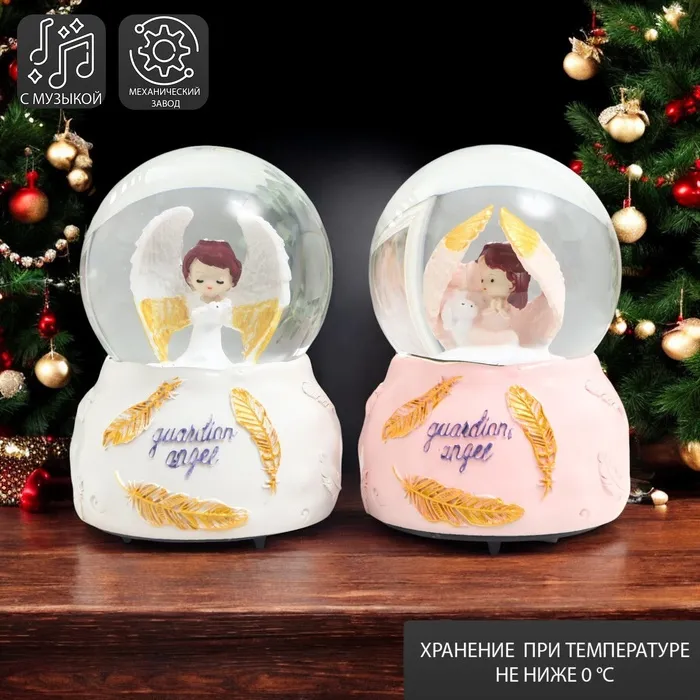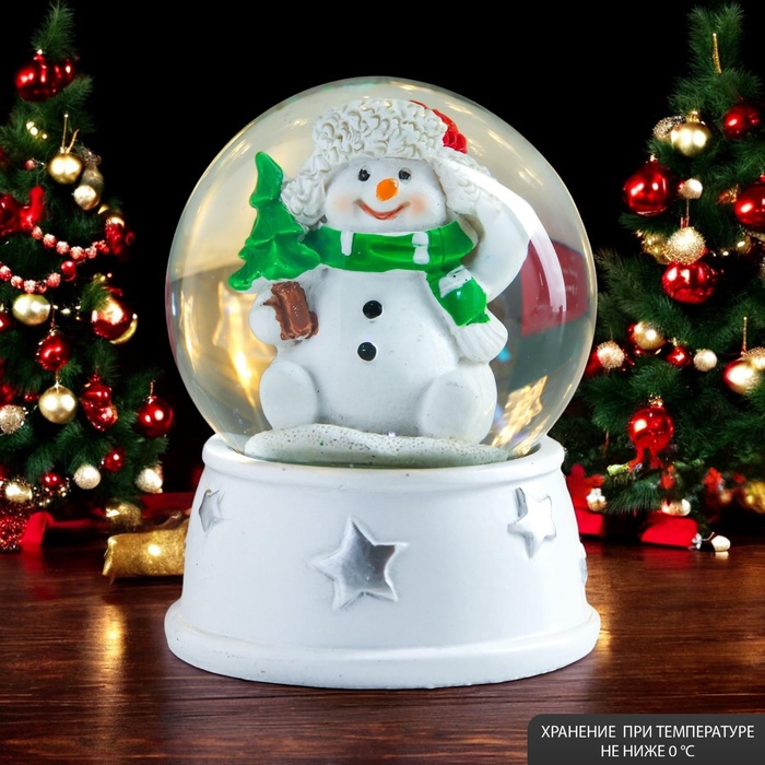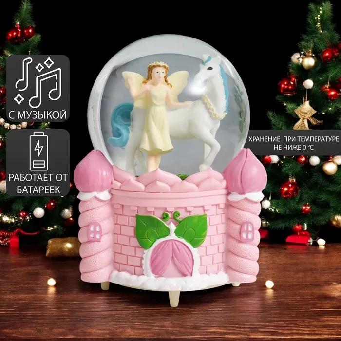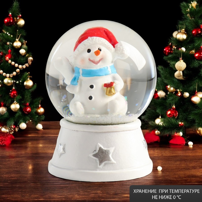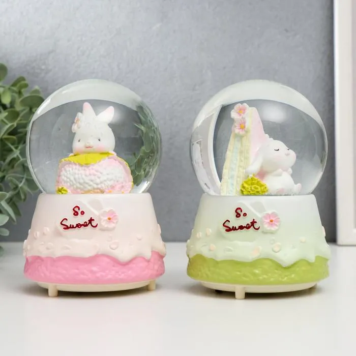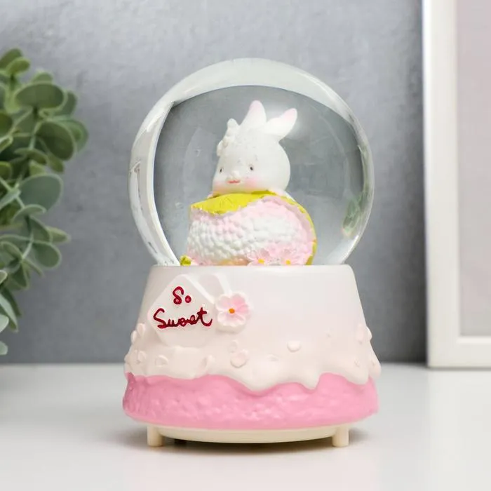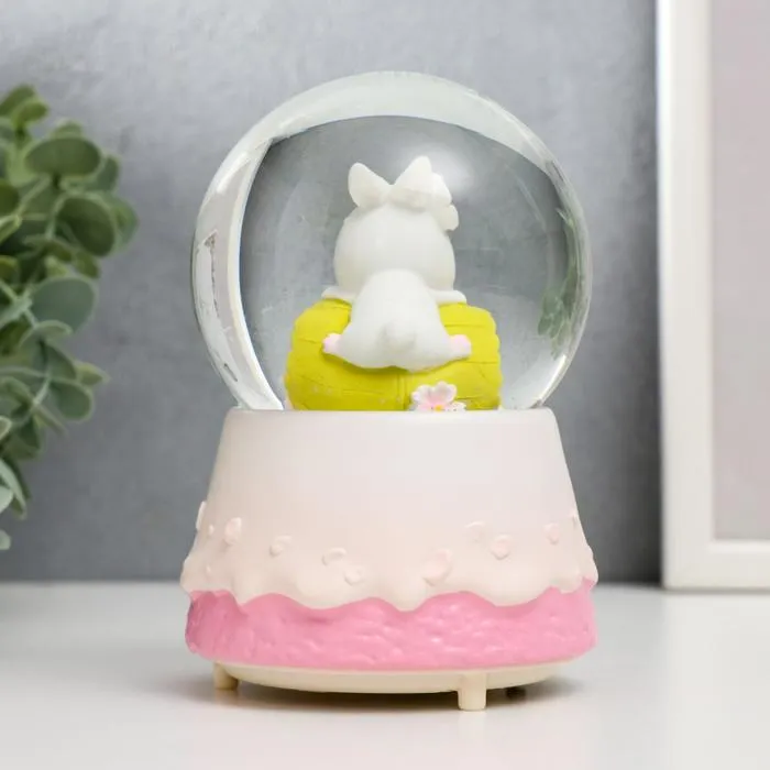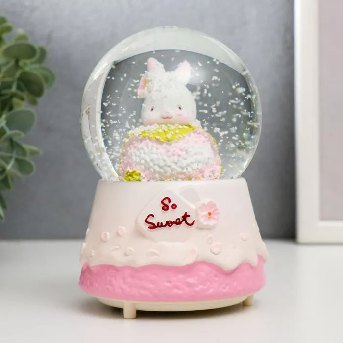 Снежный шар стеклянный «Зайка и тортик», музыкальный, световой, 13×8×8 см, МИКС — Характеристики