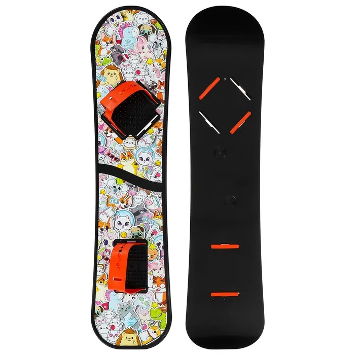 Нога крепится с помощью одного переднего ремня, регулируемого по длине. За счёт этого можно быстро вставить ногу в крепление и также легко освободиться. На доске под креплением имеются площадки с противоскользящими шипами, это делает катание более комфортным и безопасным. Крепления для ног регулируются, их можно настроить под правую и левую ногу. Благодаря небольшому весу ребёнок сможет носить сноуборд.