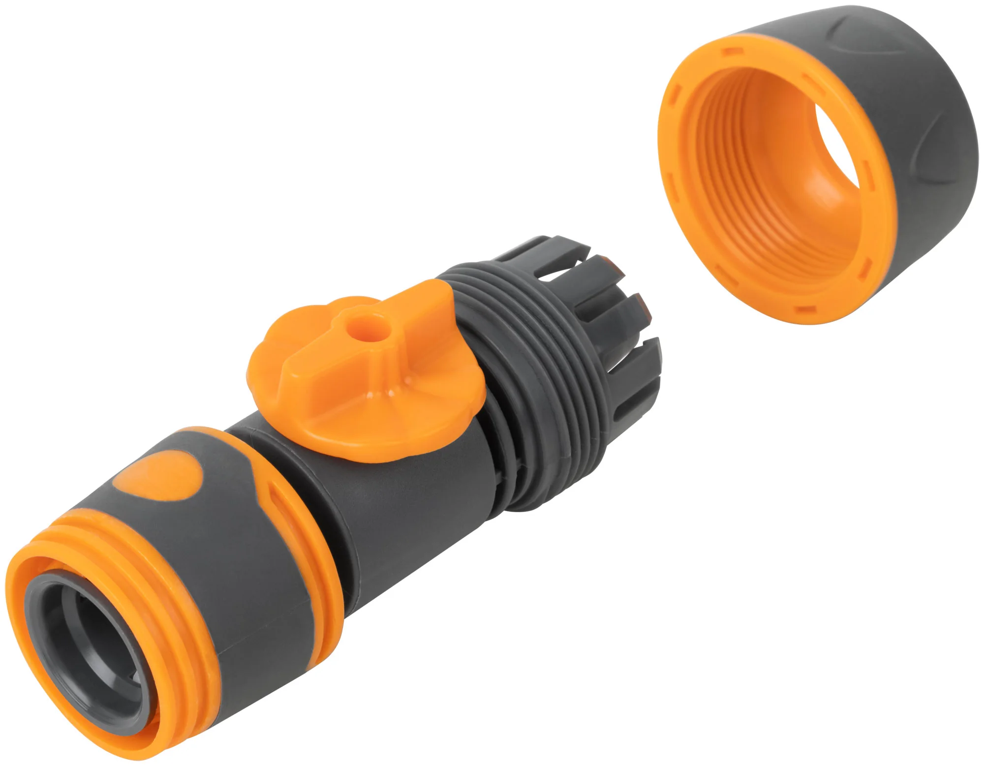 Облегчите поливочные работы с помощью двухкомпонентного соединителя FIT 77758. Этот адаптер позволяет быстро и надежно соединить поливочный шланг 3/4'' с любым устройством, имеющим универсальный соединитель. Запорный клапан обеспечивает удобное регулирование подачи воды, что важно для точного контроля полива.