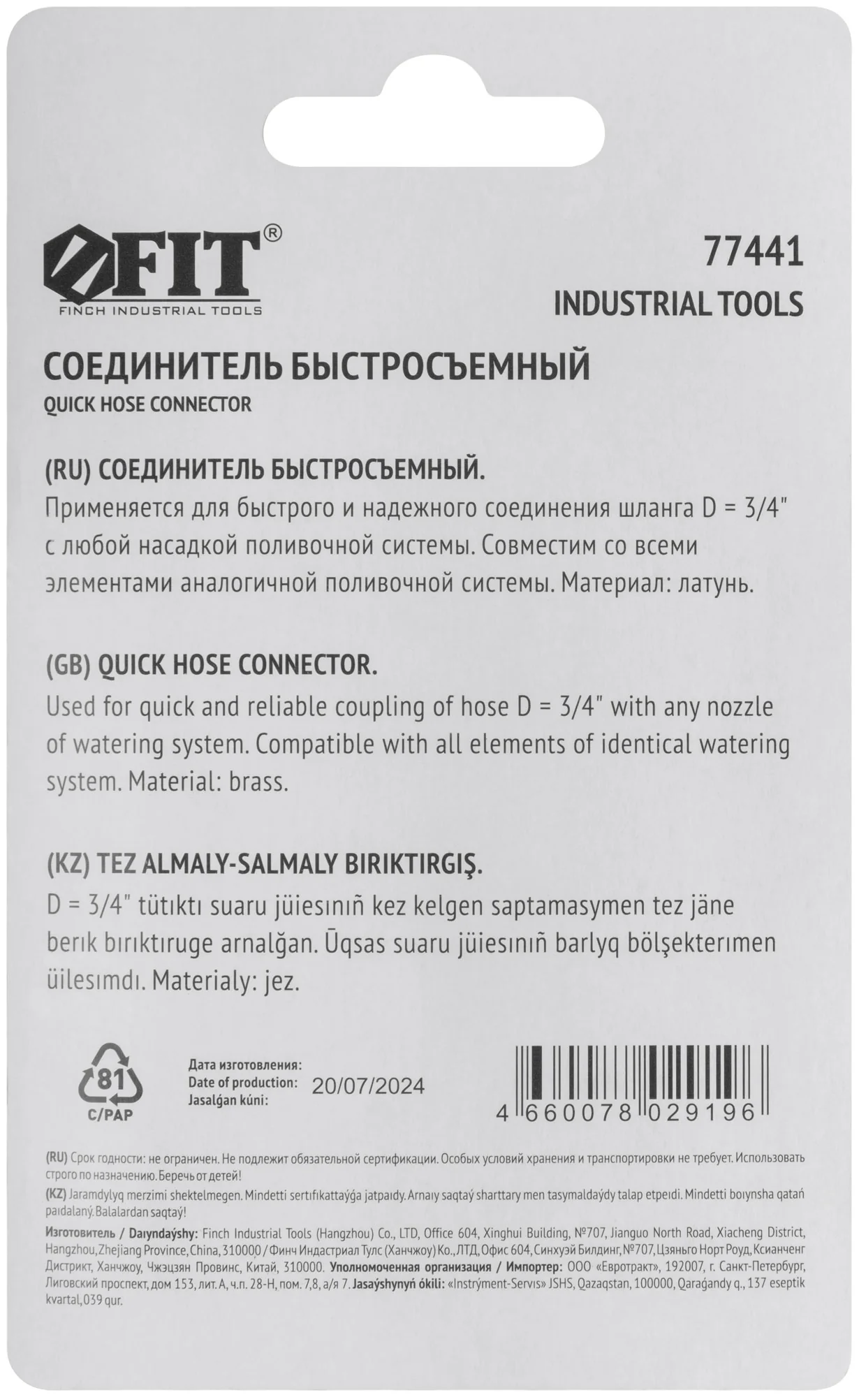 Этот латунный соединитель от FIT обеспечивает быстрое и надёжное подключение гибкого шланга к любой насадке поливочной системы. Идеально подходит для тех, кто часто занимается поливом и требует надёжности.