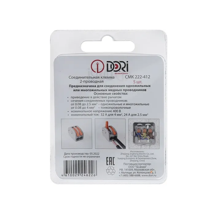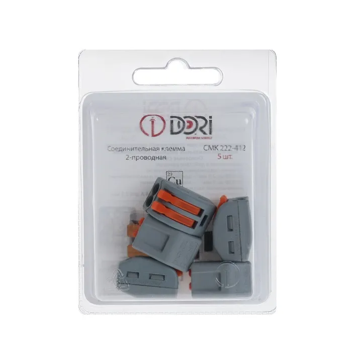 Соединительная клемма DORI (СМК 222-412) 2-х проводная, 5 шт. в блистере — Характеристики