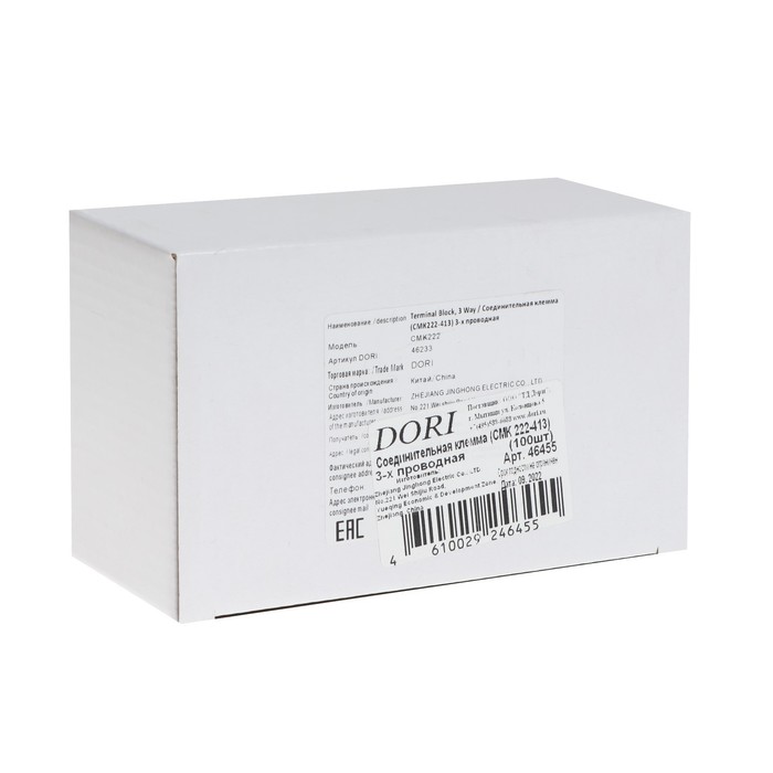 Соединительная клемма DORI (СМК 222-413) 3-х проводная, 100шт — Характеристики