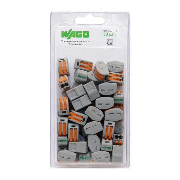 Соединительная клемма WAGO 2-х проводная (222-412) (набор 50шт) — Характеристики