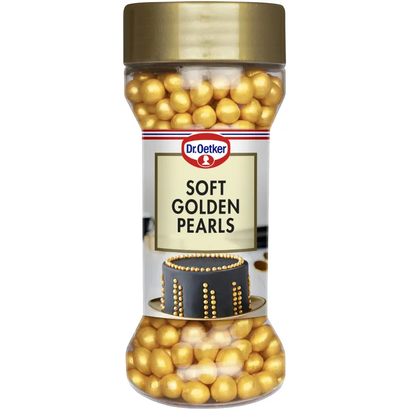 Золотистые украшения в виде жемчужин добавят вашим десертам и выпечке праздничный вид! Благодаря своей мягкой текстуре, жемчужины приятно употреблять в пищу. Упаковка содержит 42 г продукта. Информацию о продукте мы обновляем постоянно, однако рекомендуем всегда проверять данные на упаковке.