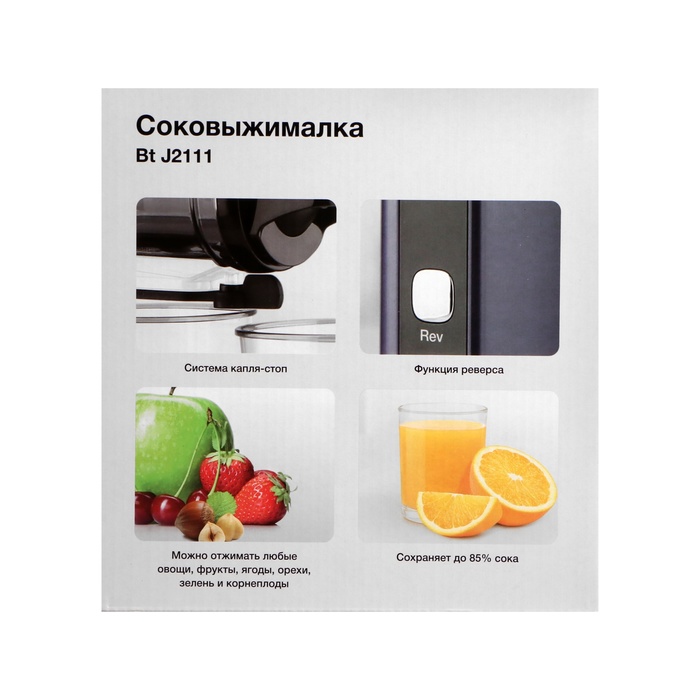 Соковыжималка Blackton Bt J2111 — это современный прибор для приготовления свежих и полезных соков. Оснащена функцией "Реверс", которая предотвращает засоры и обеспечивает стабильную работу. Скорость до 120 об/мин сохраняет максимум витаминов и полезных веществ. Система "Капля-стоп" предотвращает протекание, а автоматический выброс мякоти упрощает процесс очистки. Blackton Bt J2111 — удобство и качество в каждом стакане!