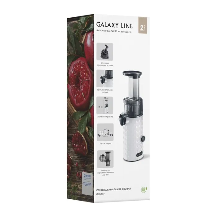 Вертикальная шнековая соковыжималка GALAXY LINE GL 0807 – прибор, предназначенный для ежедневного использования.