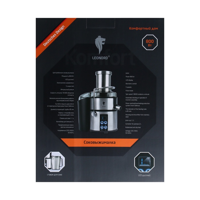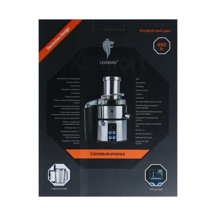 Соковыжималка Leonord LE-1710 — это надежный помощник для тех, кто ценит здоровье и вкус свежевыжатых соков каждый день.
