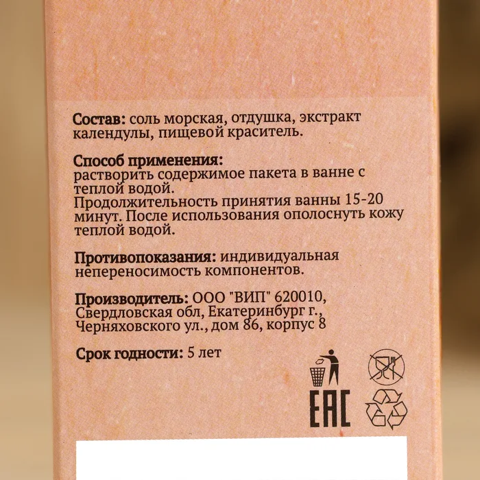 - Натуральные экстракты: Соль обогащена экстрактами растений, которые обладают увлажняющими и питательными свойствами, помогая ухаживать за кожей, придавая ей бархатистую текстуру.