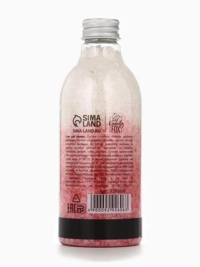 Соль для ванны «100% БОГИНЯ», 500 г, аромат малинового сорбета, Beauty Fox — Характеристики