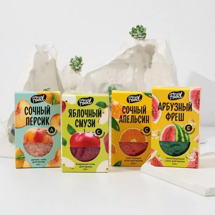 Соль для ванны, 200 г, аромат клубники, BEAUTY FOOD — Характеристики