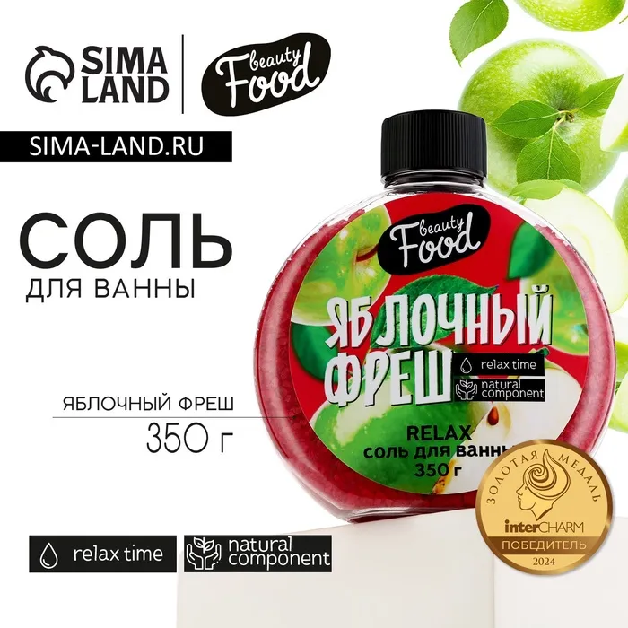 Соль для ванны, 350 г, аромат яблока, BEAUTY FOOD — Характеристики