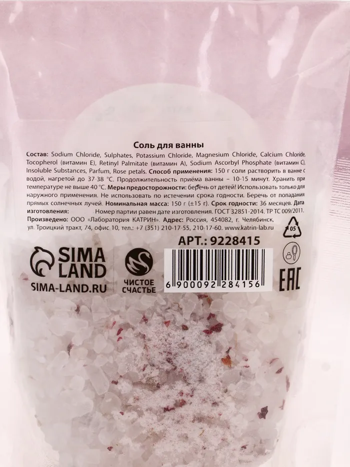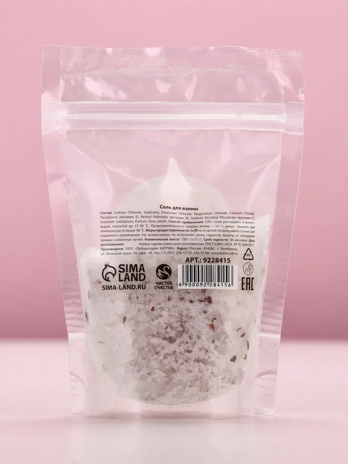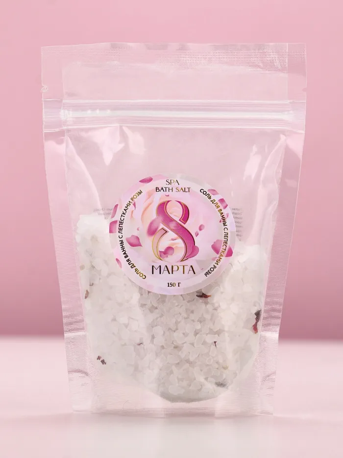 Соль для ванны «8 марта», с лепестками розы, 150 г, Чистое счастье — Характеристики
