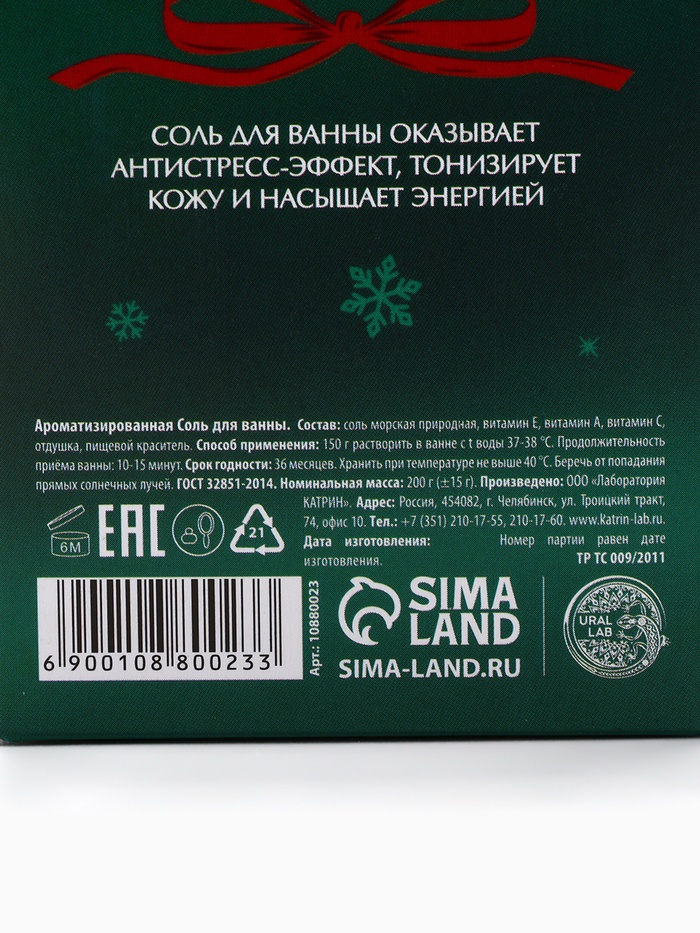 Соль для ванны, аромат яблочный пунш, 200 г, URAL LAB — Характеристики