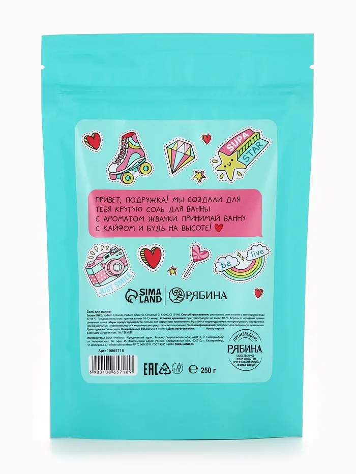 Соль для ванны, аромат жвачки 250 г, TEEN BEE — Характеристики