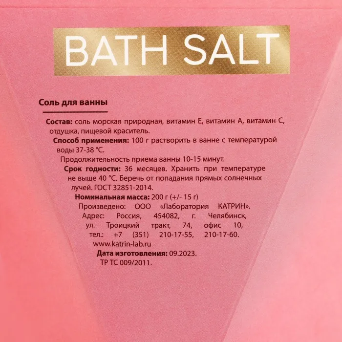 Соль для ванны Bath Salt, 200 г, аромат розы, Чистое счастье — Характеристики