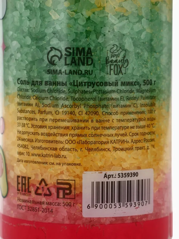 Соль для ванны «Детка, это авокато», 500 г, аромат цитрусовый, Beauty Fox — Характеристики