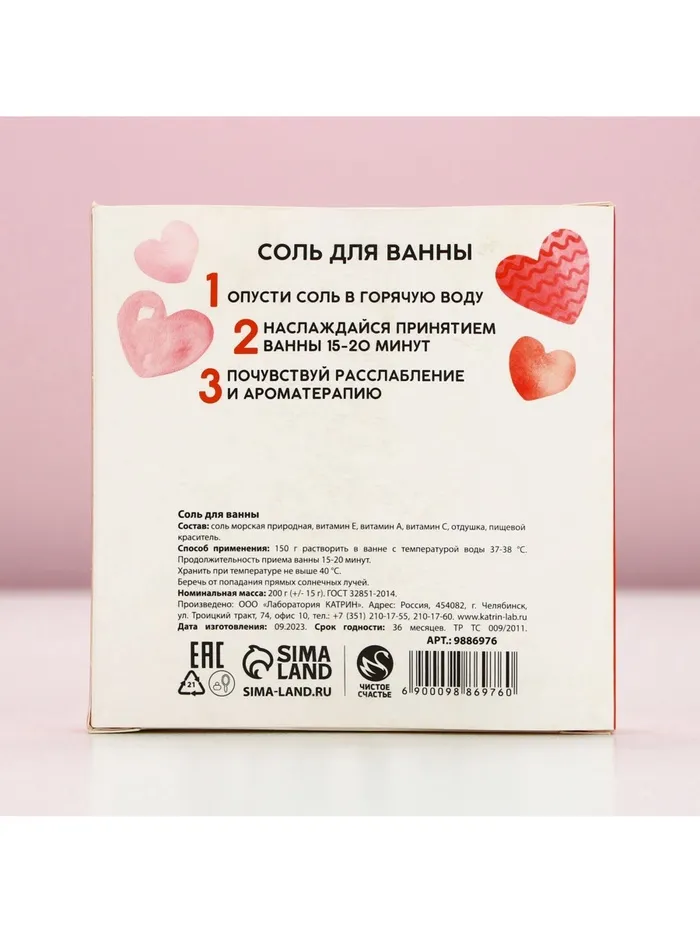 Соль для ванны I Love you, 200 г, аромат ягод, Чистое счастье — Характеристики