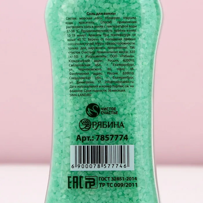 Соль для ванны «Кайфани!», 320 г, аромат зелёного яблока, Чистое счастье — Характеристики