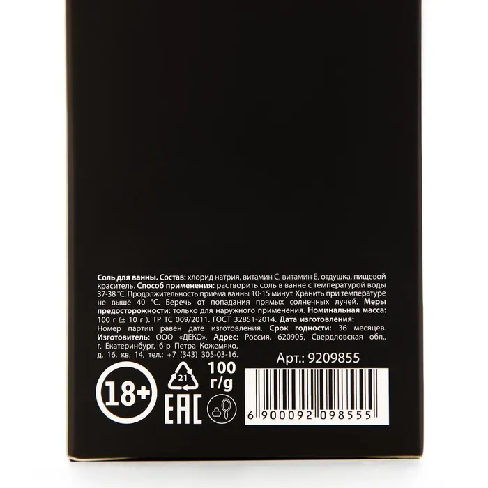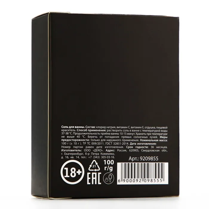 Соль для ванны «Малышка, ты бомба», 100 г, аромат клубники, 18+, ЧИСТОЕ СЧАСТЬЕ — Характеристики