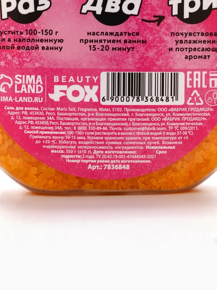 Способ применения: 100-150 г соли растворить в ванне с теплой водой (t воды 37-38 °С). Принимать ванну 10-15 мин. Состав: Maris Salt, Fragrance, Water, E102.