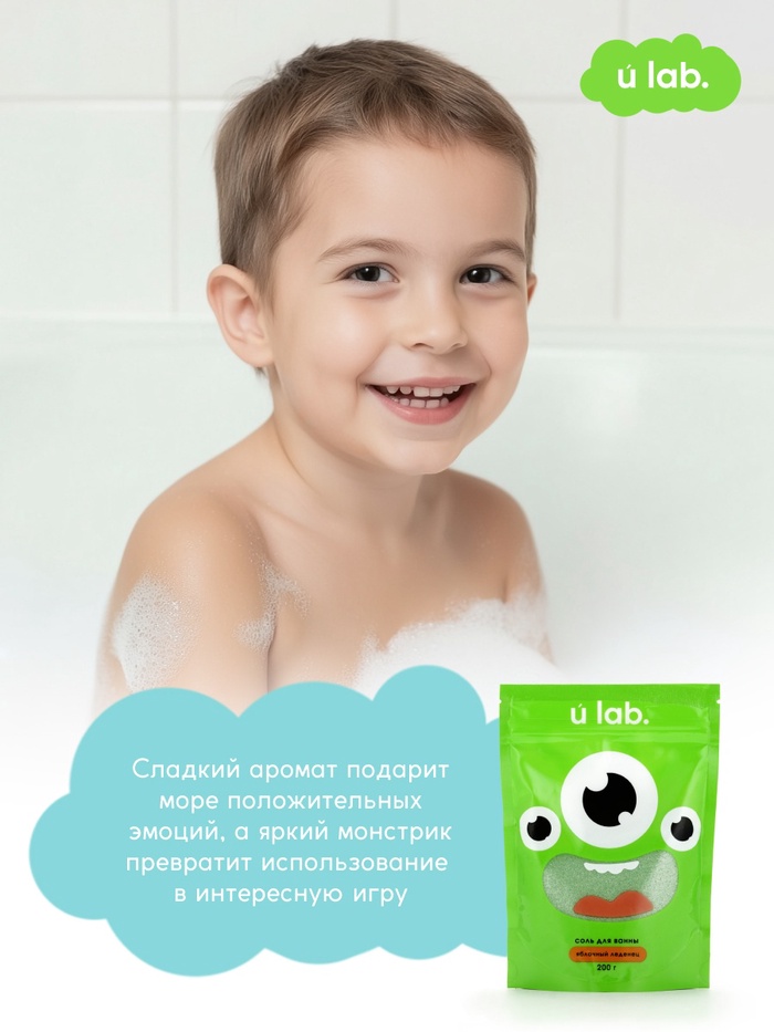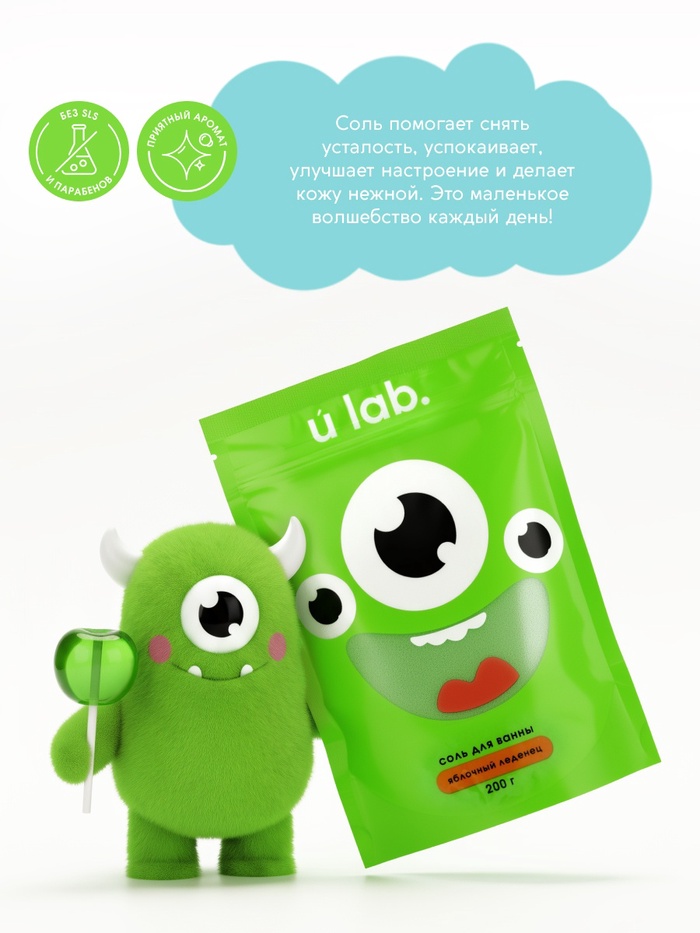 Соль для ванны «Монстрики», 200 г, аромат яблочный леденец, ULAB — Характеристики