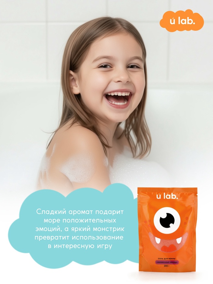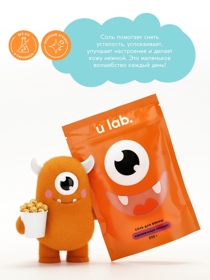 Соль для ванны «Монстрики», 200 г, аромат карамельный попкорн, ULAB — Характеристики
