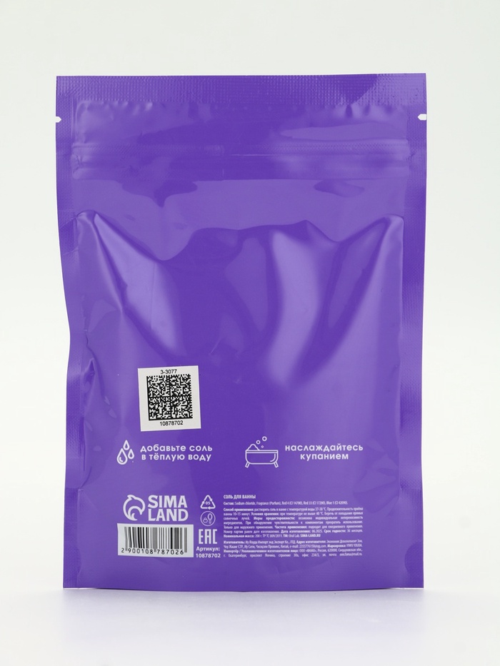 Состав: Sodium chloride, Fragrance (Parfum), Red 4(CI 14700), Red 33(CI 17200), Blue 1(CI 42090).