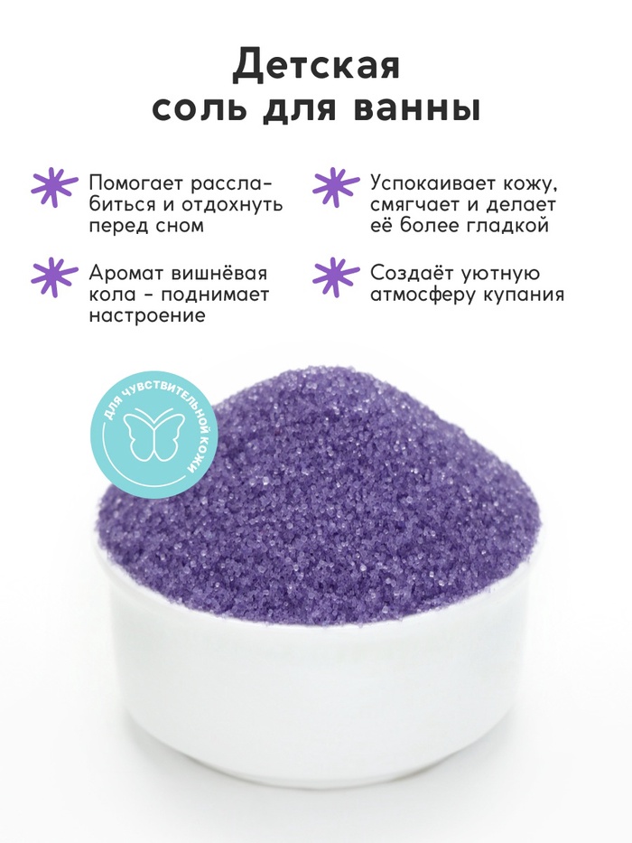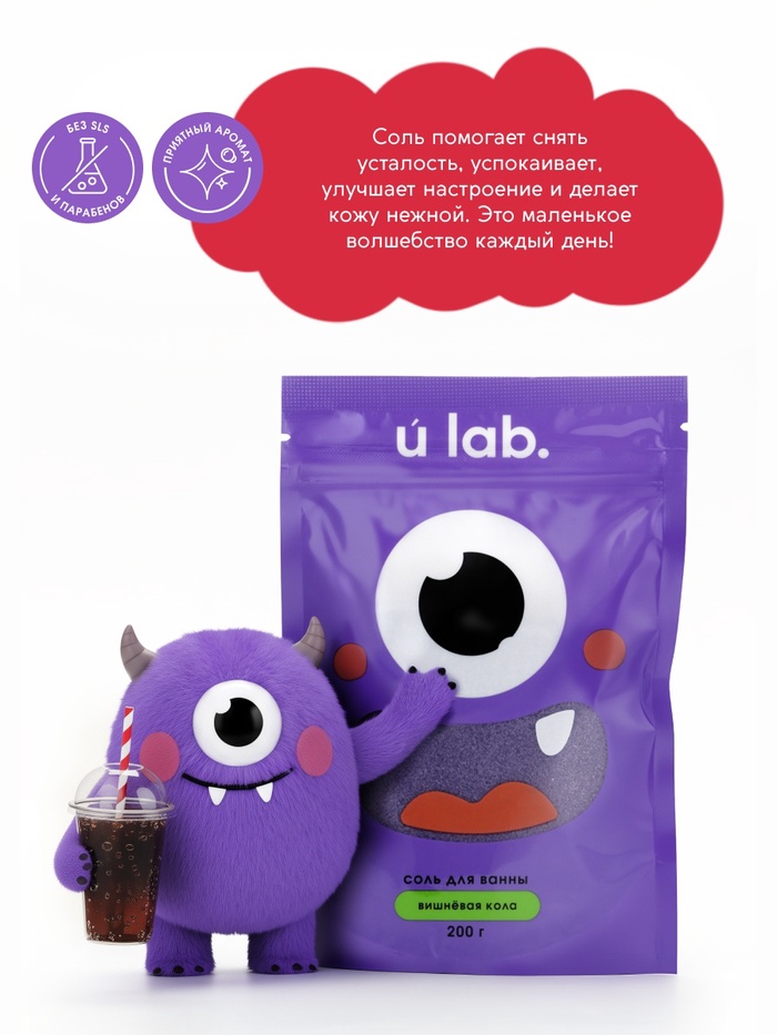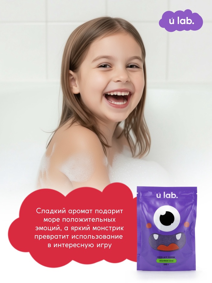 Соль для ванны «Монстрики», 200 г, аромат вишнёвая кола, ULAB — Характеристики