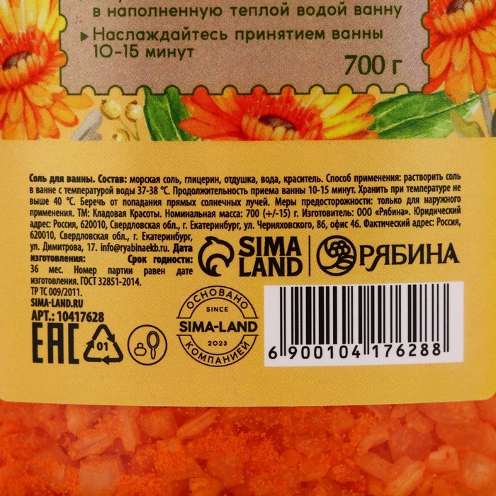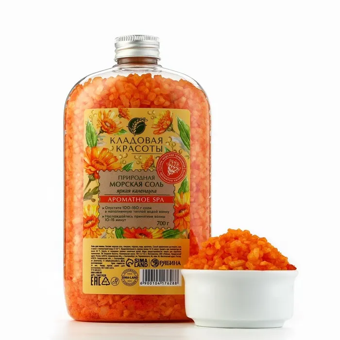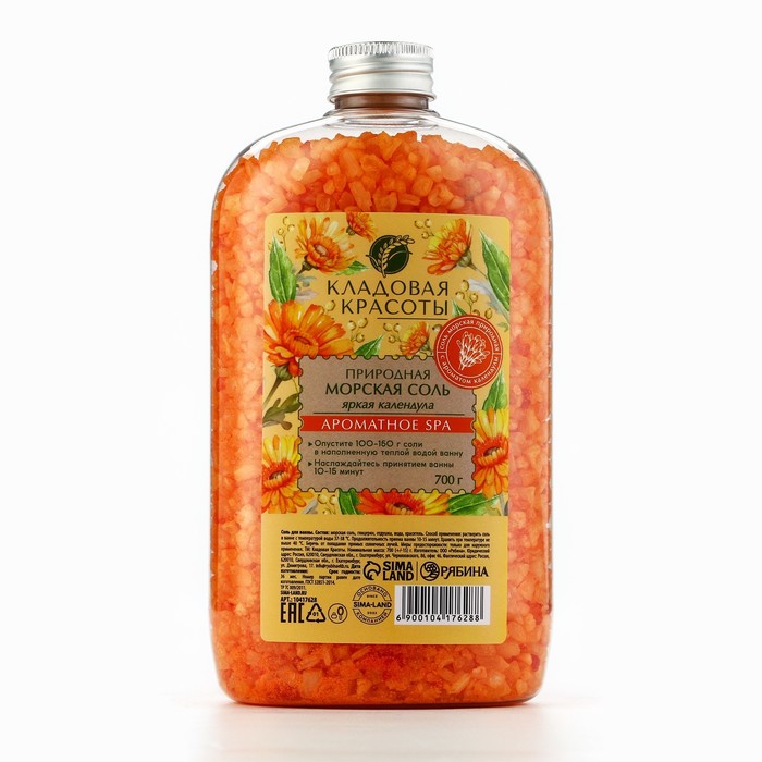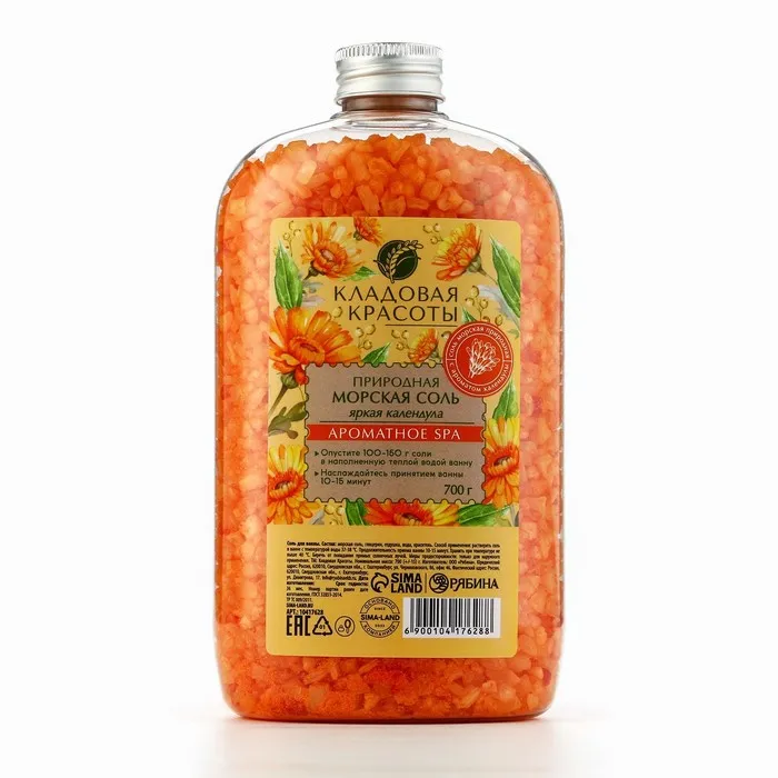 Соль для ванны природная морская, 700 г, аромат календулы, КЛАДОВАЯ КРАСОТЫ — Характеристики