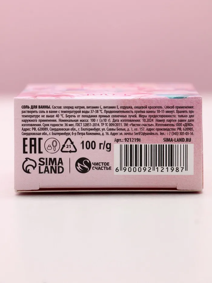 Соль для ванны «С 8 Марта!», 100 г, аромат ягодный пунш — Характеристики