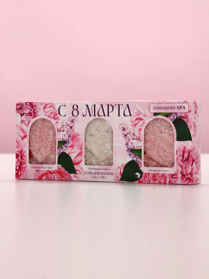 Соль для ванны «С 8 марта!», 3 шт., аромат лаванда, ваниль и ягодный микс — Характеристики