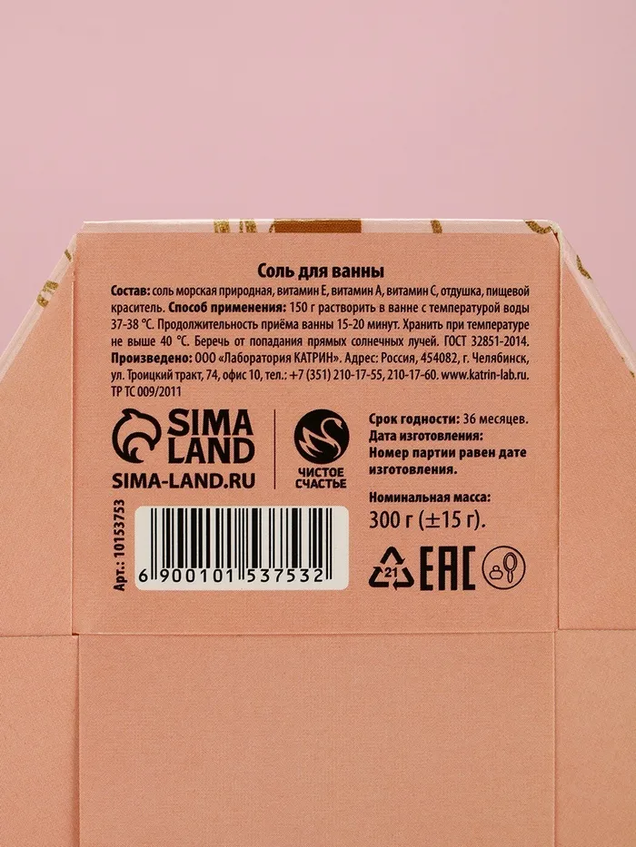 Соль для ванны «С 8 Марта!», 300 г, аромат нежной карамели, Чистое счастье — Характеристики