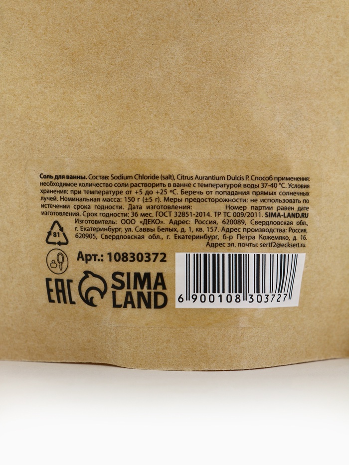 Соль для ванны с апельсином и цедрой, 150 г, Банный дух — Характеристики
