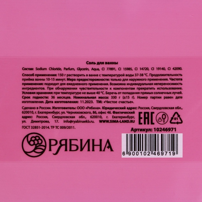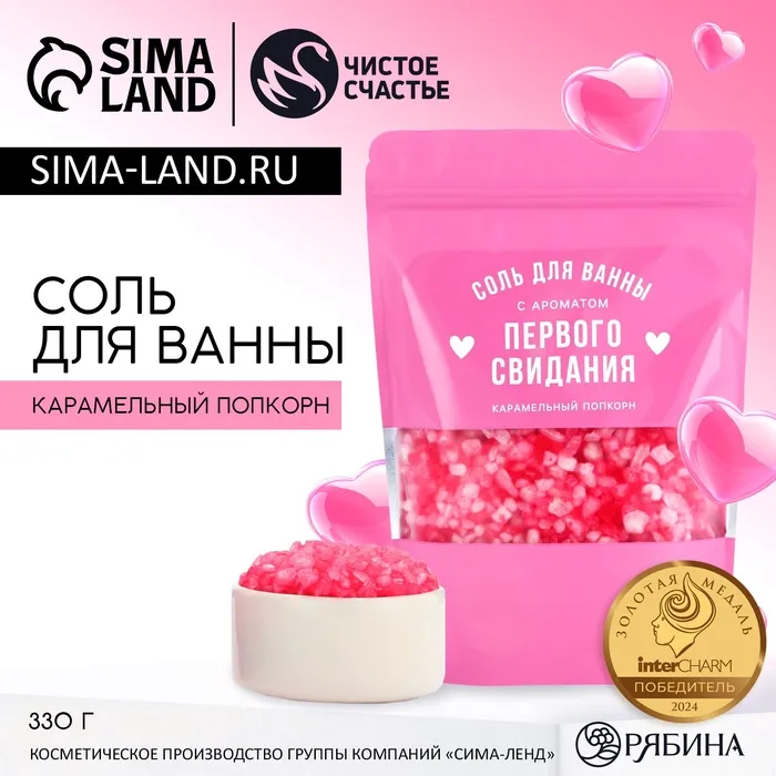 Соль для ванны «С ароматом первого свидания», 330 г, аромат карамельного попкорна, Чистое счастье — Характеристики