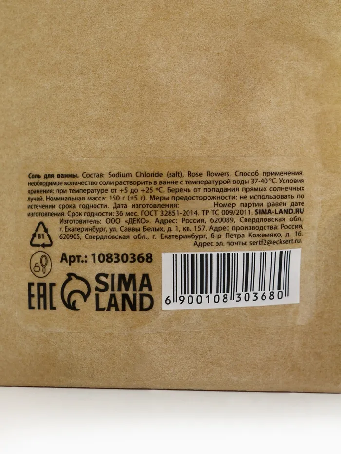 Соль для ванны с бутонами роз, 150 г, Банный дух — Характеристики