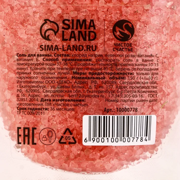 Соль для ванны с бутонами розы, 150 г, Чистое счастье — Характеристики