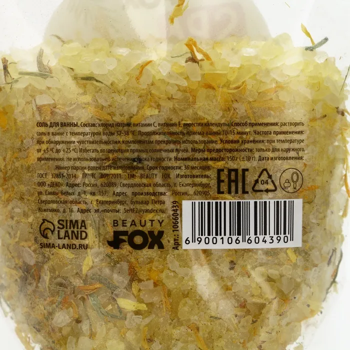 Соль для ванны с лепестками календулы, 150 г, Beauty Fox — Характеристики