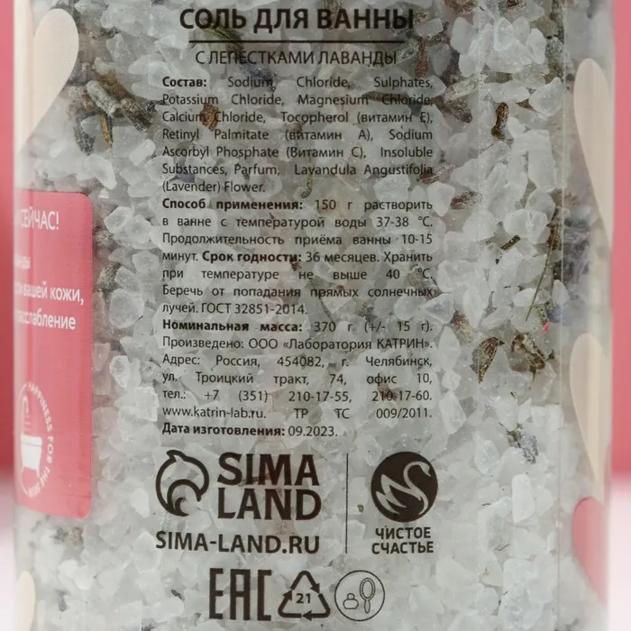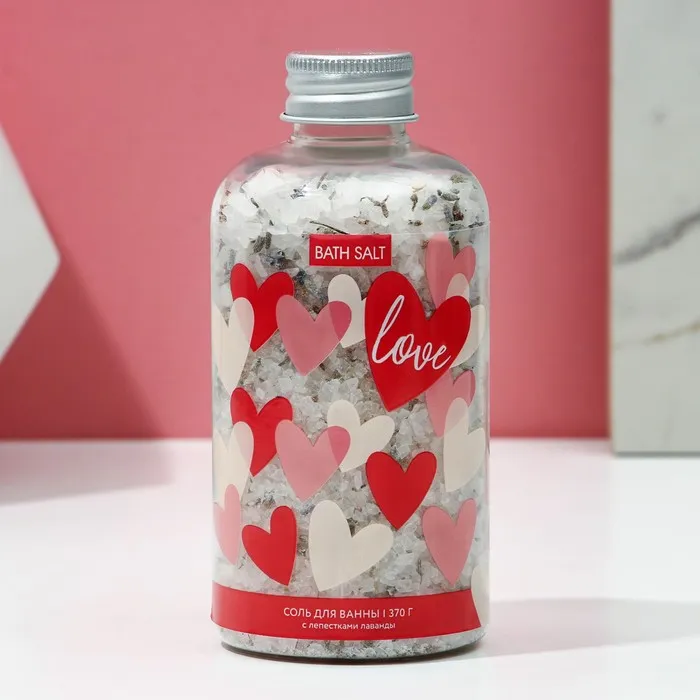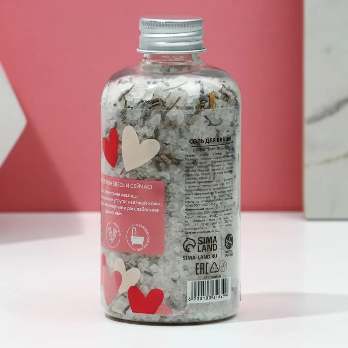 Соль для ванны с лепестками лаванды Love, 370 г, Чистое счастье — Характеристики
