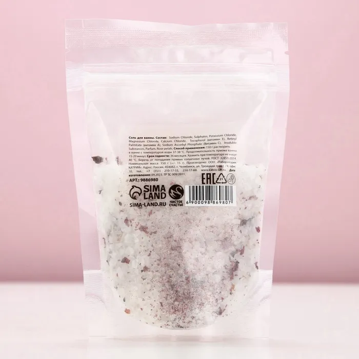 Соль для ванны с лепестками роз, 150 г, Чистое счастье — Характеристики