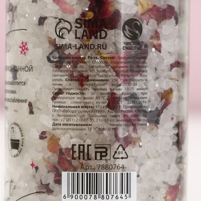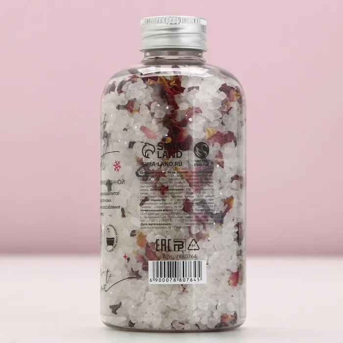 Соль для ванны с лепестками розы, 370 г, Чистое счастье — Характеристики