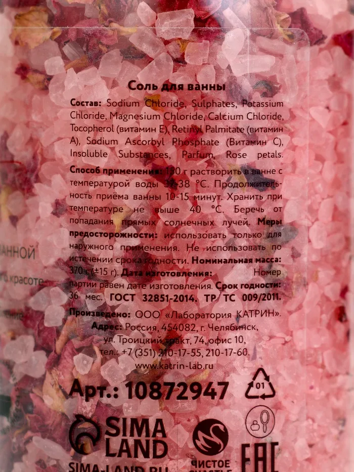 Соль для ванны с лепестками розы, 370 г — Характеристики