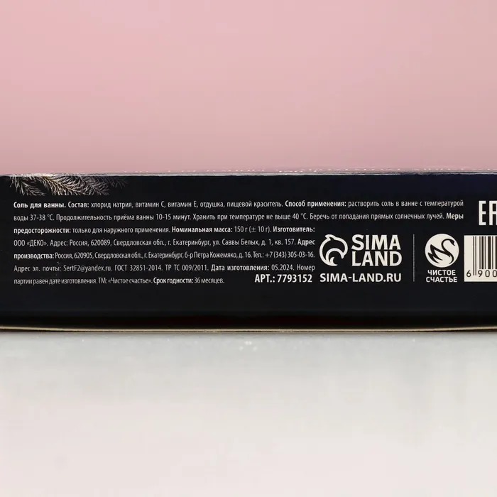Соль для ванны «С Новым Годом!», 150 г, аромат сладкого миндаля, Чистое счастье — Характеристики