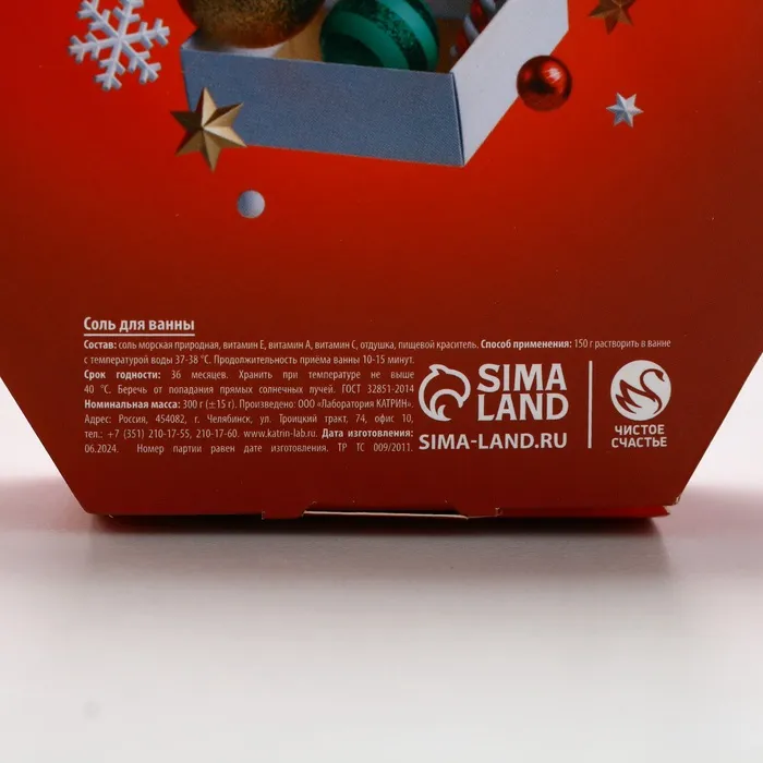 Соль для ванны «С Новым Годом», 300 г, аромат имбирного пряника, Чистое счастье — Характеристики