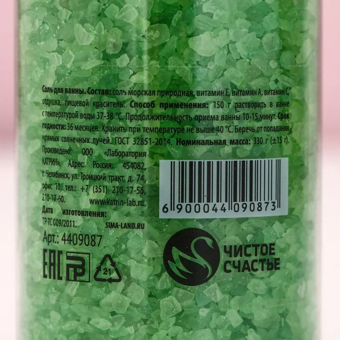 Соль для ванны «С Новым Годом», 330 г, аромат яблока, Чистое счастье — Характеристики
